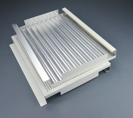 瓦楞板構造主要由鋁質面板,瓦楞芯構成。極大增強了鋁質瓦楞板幕墻的強度與鋼性。保證了長期使用中的平整度及抗風抗震能力,有極強的隔熱、隔音、防火、保溫作用,是新型“節能”、“環保”裝飾材料。