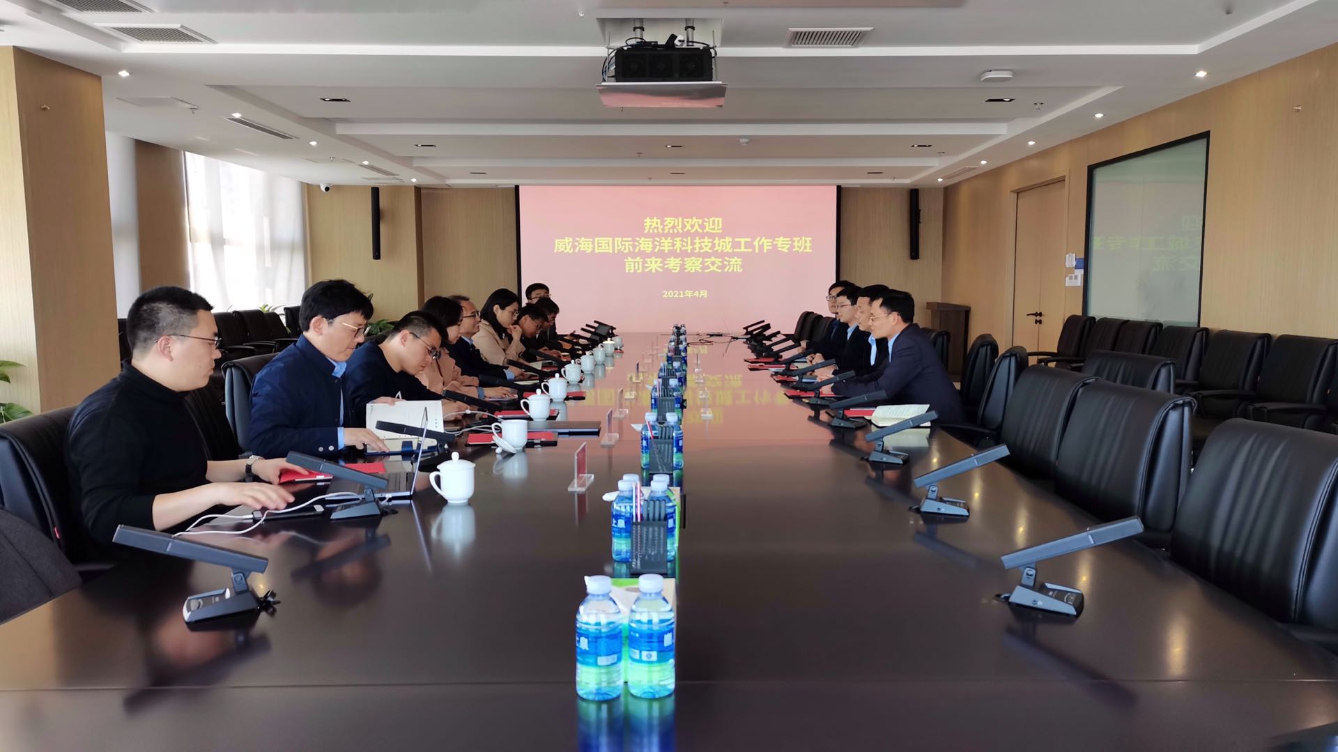 4月19日,威海國際海洋科技城建設推進工作專班(以下簡稱“工作專班”)一行到訪海控集團調研學習,海控集團黨委副書記王文景,投融資運營部、戰略發展部等部門負責人陪同交流。